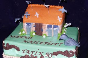 Narodeninová torta pre muža na 50tku, torta s holubníkom a holubmi